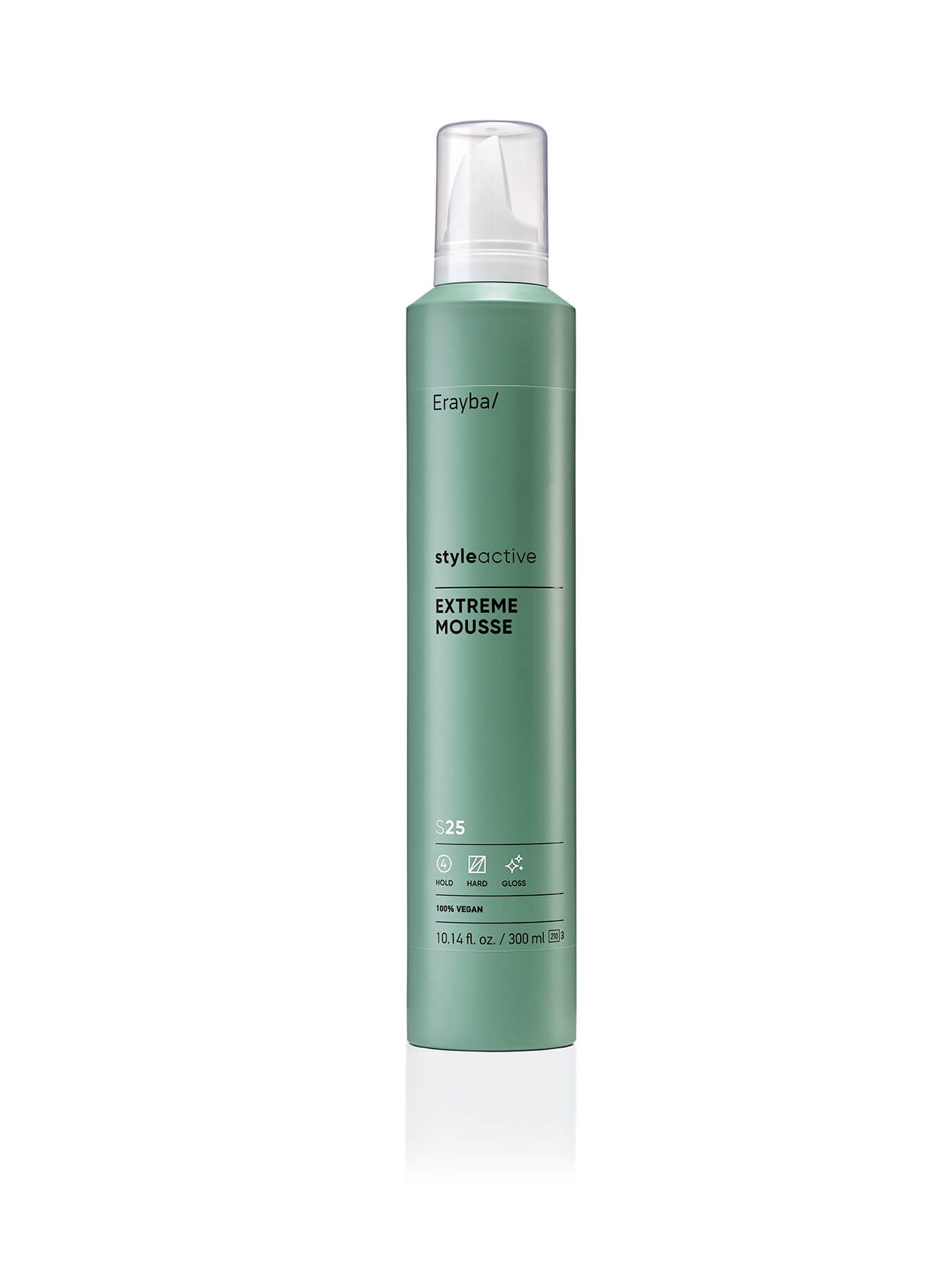 Du behøver ikke gå på kompromis med indholdsstofferne for at få stort hår. Erayba S25 er en del af Style Active-serien, hvilket garanterer, at det er en 100% vegansk mousse. Den er skabt med omtanke for både din hovedbund og miljøet.
